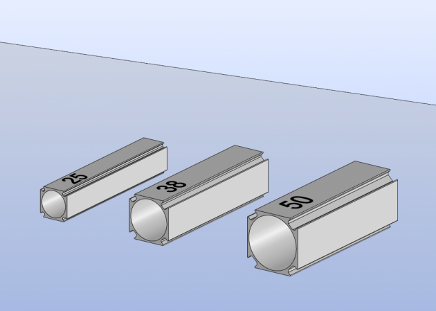 Lieferbar sind die Profilrohre Semi mit einem Innendurchmesser von 25, 38 und 50mm in natur oder eloxierter Oberfläche.